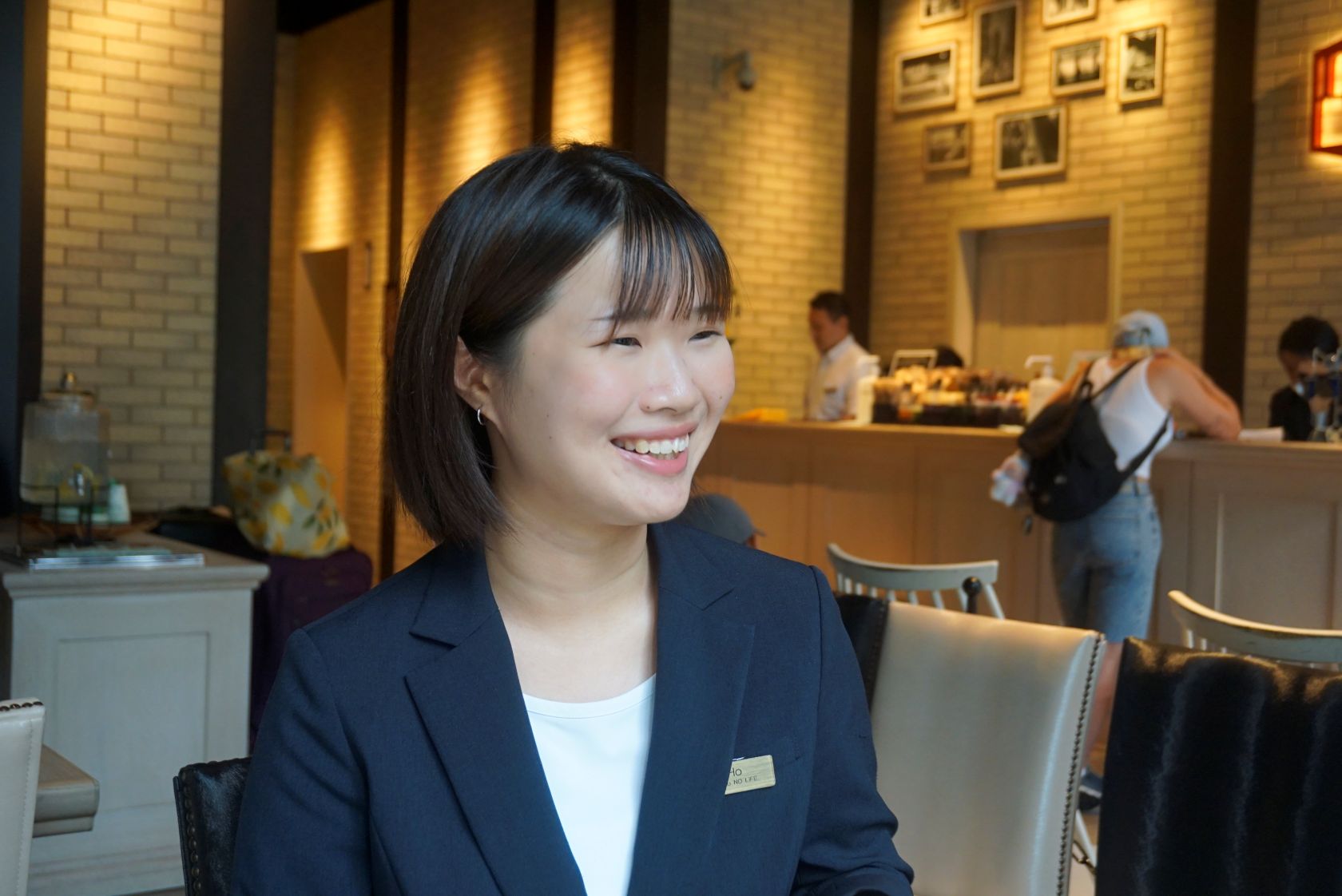 「サービス経験はあっても、ホテル業界は初めてというスタッフが多いですね。未経験であっても周囲のサポートが手厚く、お客様対応をしていく中で業務が身につくような環境です。私自身、英語はそこまで話せなかったのですが、周りのスタッフにたくさん教えてもらい、対応出来るようになってきました!」