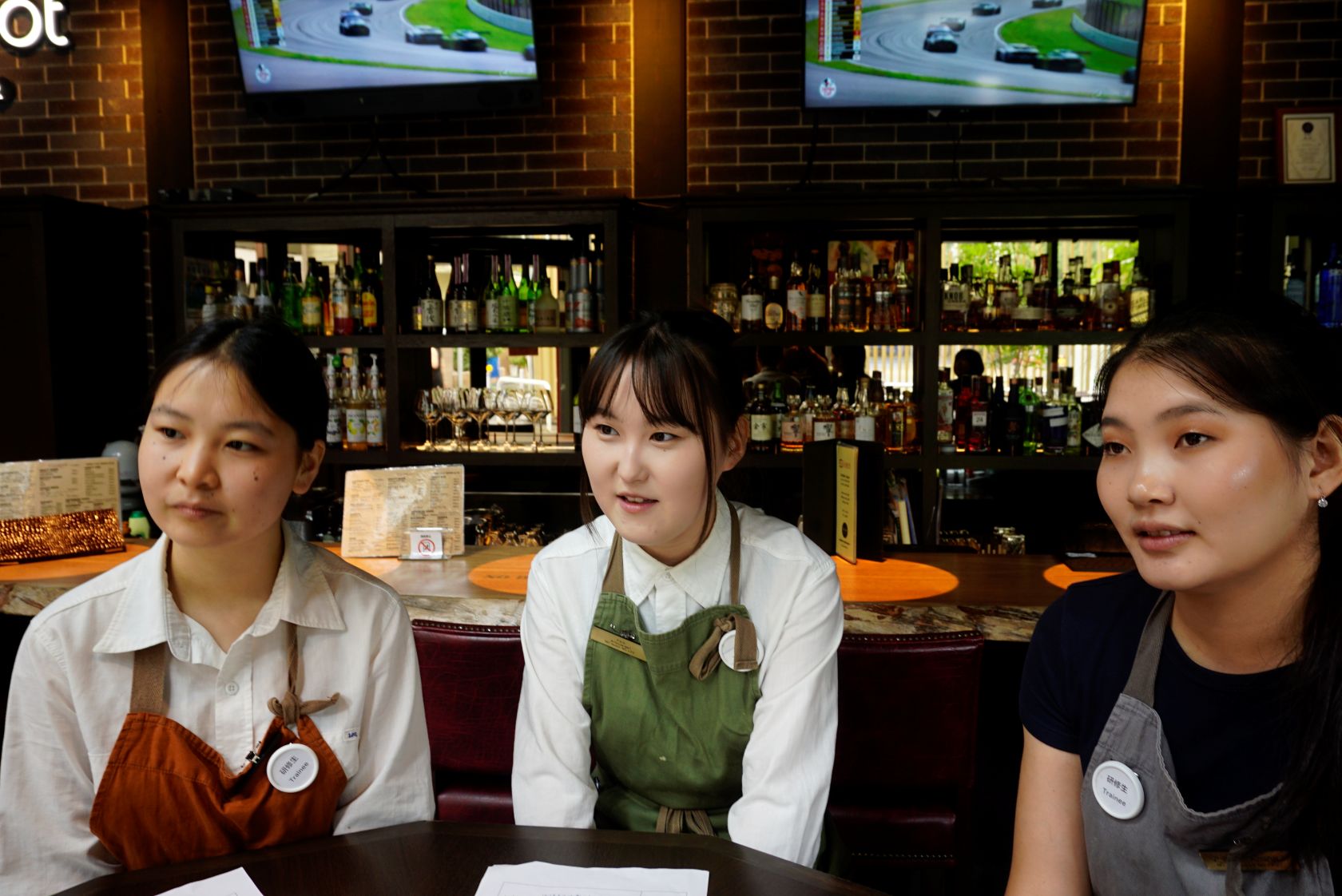 最後にお話を伺ったのは、モンゴルの大学でホテルマネジメントを学び、1年間のインターンとして入社されたドゴーさん、アルカさん、アミナさん。このホテルのカフェ&バーで世界中のお客様をもてなして来ました。